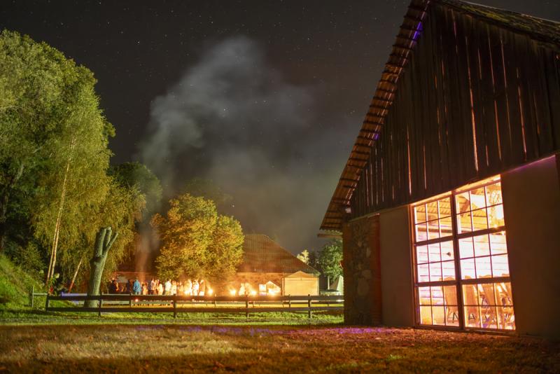 Teritorijas centrā atrodas plašs svinību šķūnis, kas ar savu vienkāršo, bet eleganto lauku estētiku rada siltu un mājīgu noskaņu jebkuram pasākumam – kāzām, jubilejām, dzimšanas dienām vai korporatīvajiem pasākumiem. Vakara stundās telpu piepilda lampiņu virtenes, kas rada romantisku un svinīgu atmosfēru.
