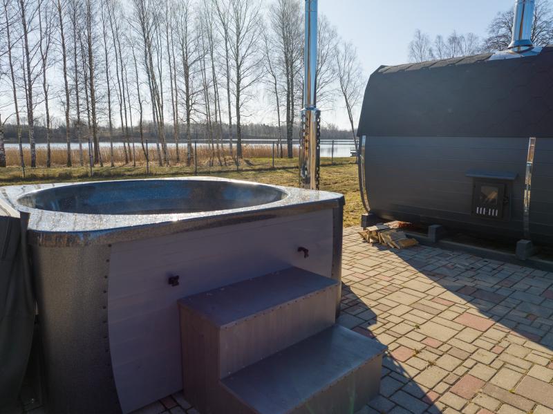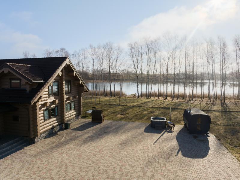 • Plaša, privāta āra teritorija pašā ezera krastā ar terasi, grilu, ugunskura vietu, iespēju nomāt tikko jaunu pirti un kublu, laivu, pasākumiem iespējama nojume