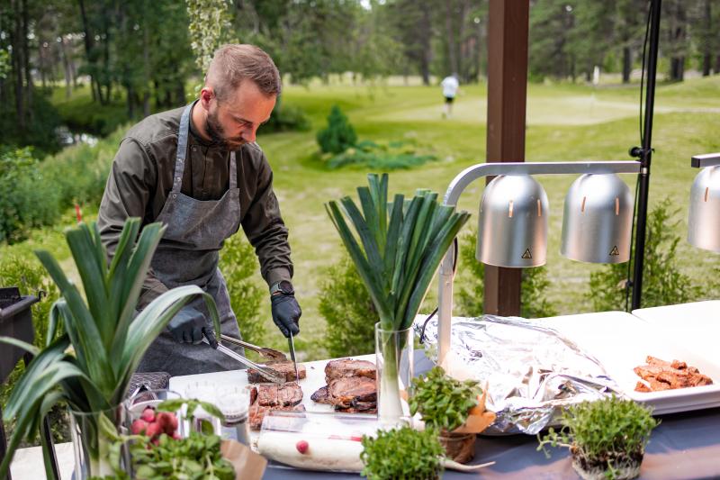 Golfa kluba teritorijā piedāvājam iespēju rīkot plašus piknikus, kur mūsu profesionālie šefpavāri grilē ēdienu uz vietas, radot autentisku un siltu atmosfēru.
