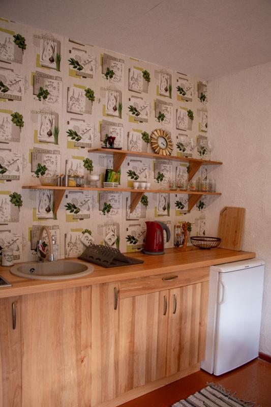 Atsevišķa mājiņa ar diviem dzīvokļiem (katrā 2 gultas + izvelkams krēsls).