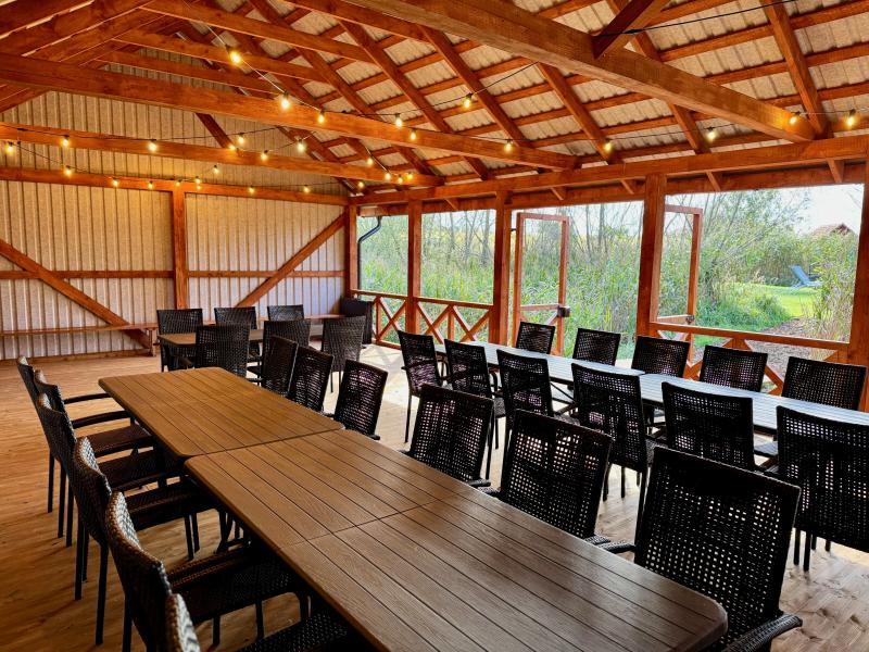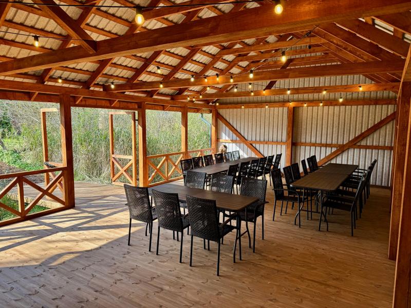 Гостевой дом расположен в живописном месте рядом с частным прудом, где можно порыбачить, поплавать или покататься на весельной лодке. На небольшом островке находится беседка с камином и местом для костра, что создаст особую атмосферу для вашего вечера.
