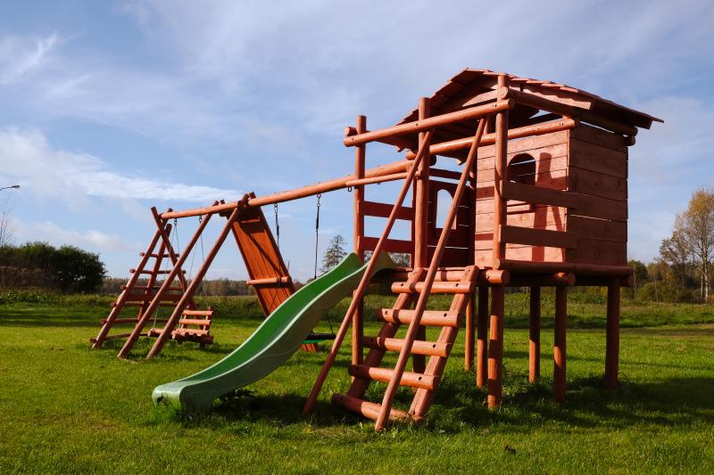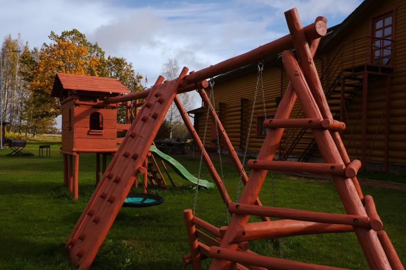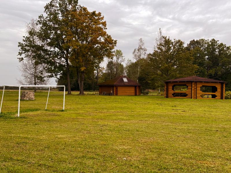 1. Viesu nama apkārtne – atrodas smukas pļavas vidū ar nopļautu teritoriju apkārt, kas padara vakara ainu neaizmirstami burvīgu. Blakus viesu namam ir neliels rotaļu laukums, kas ir labs bonuss, ja kāzās ir bērni. Kā arī, ja viesu nams tiek iznomāts citiem pasākumiem – ēka atrodas netālu no ūdens un apkārt ir pieejami vairāki sporta laukumi!