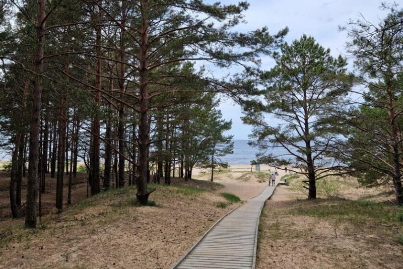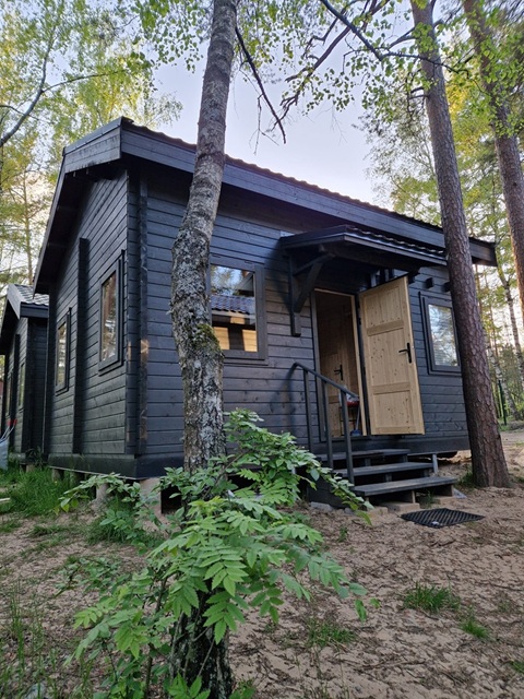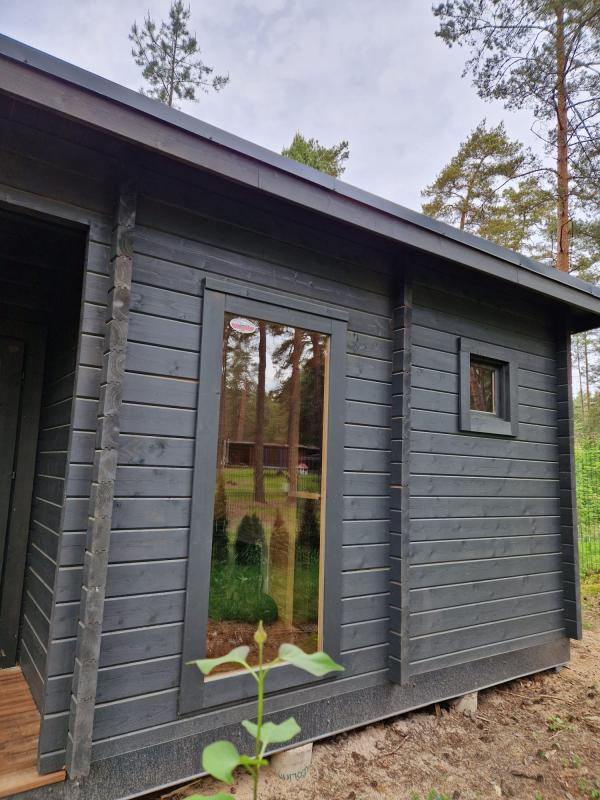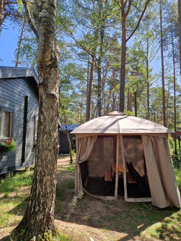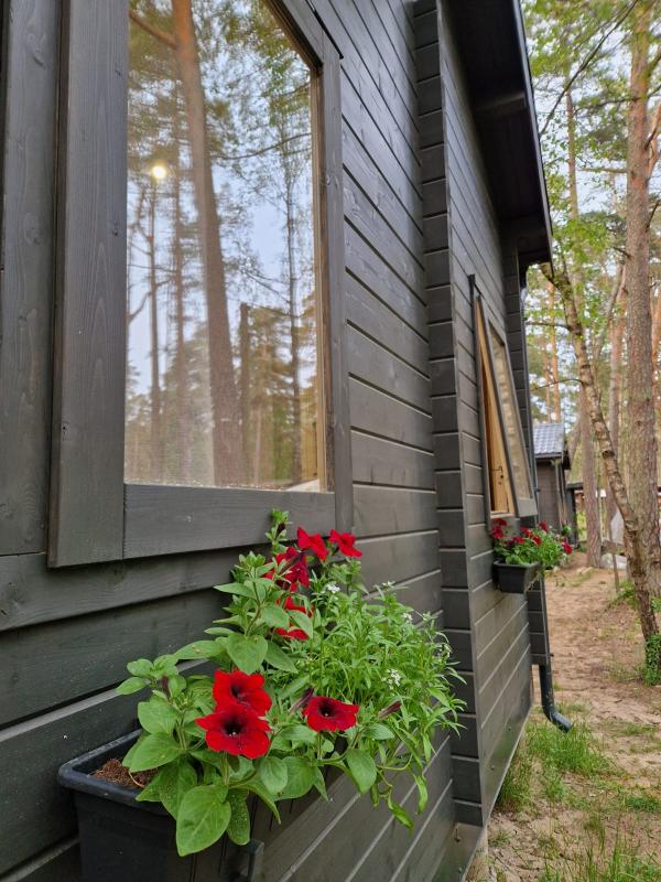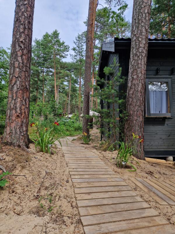Četri brīvdienu namiņi un pirts atrodas iežogotā teritorijā priežu mežā, 15 minūšu gājiena attālumā no plašas un mierīgas pludmales.