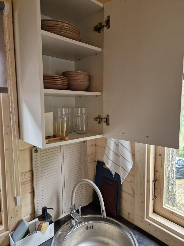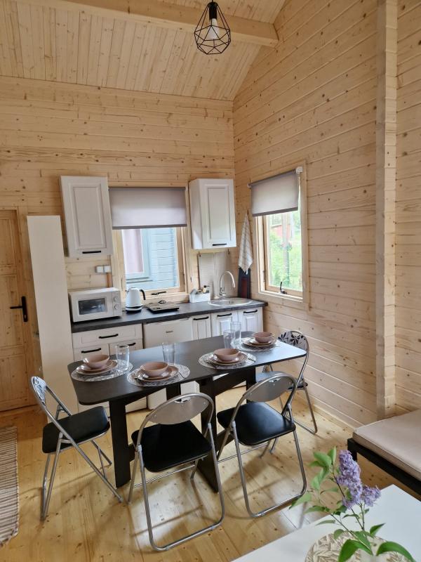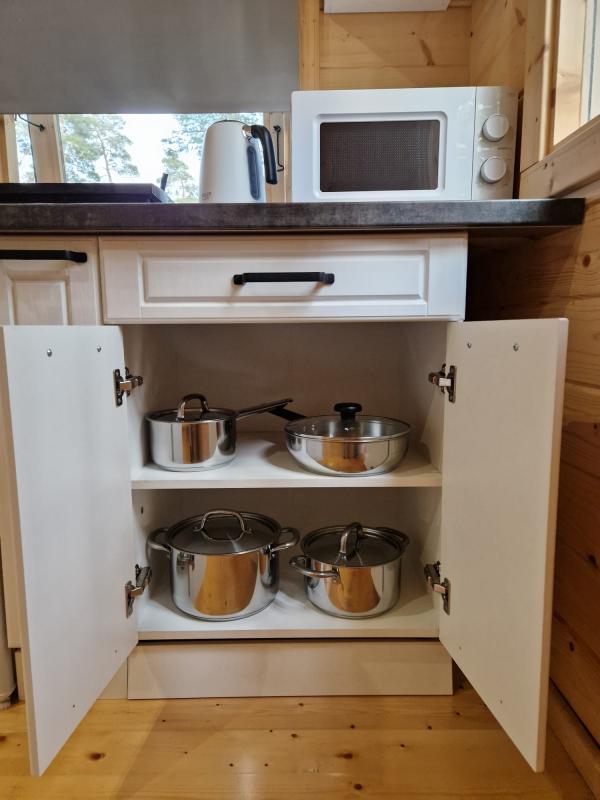 Namiņā ir viss nepieciešamais ērtai atpūtai: gultasveļa, dvieļi, trauki, duša un virtuve. Katrā namiņā ir četras pilnvērtīgas guļvietas.