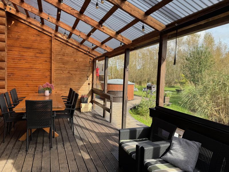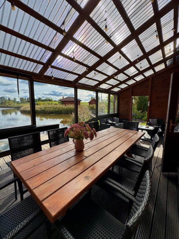 Mūsu viesu namā pieejama arī meža lielā svinību zāle (60 m2) – brīvdabas telpa ar trim slēgtām sienām un vienu vaļēju sienu.